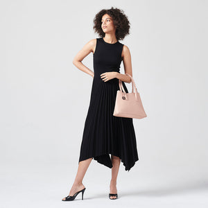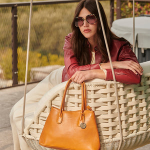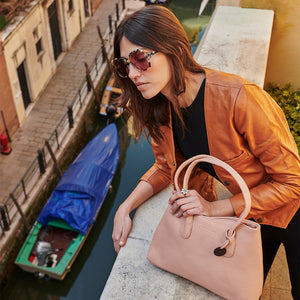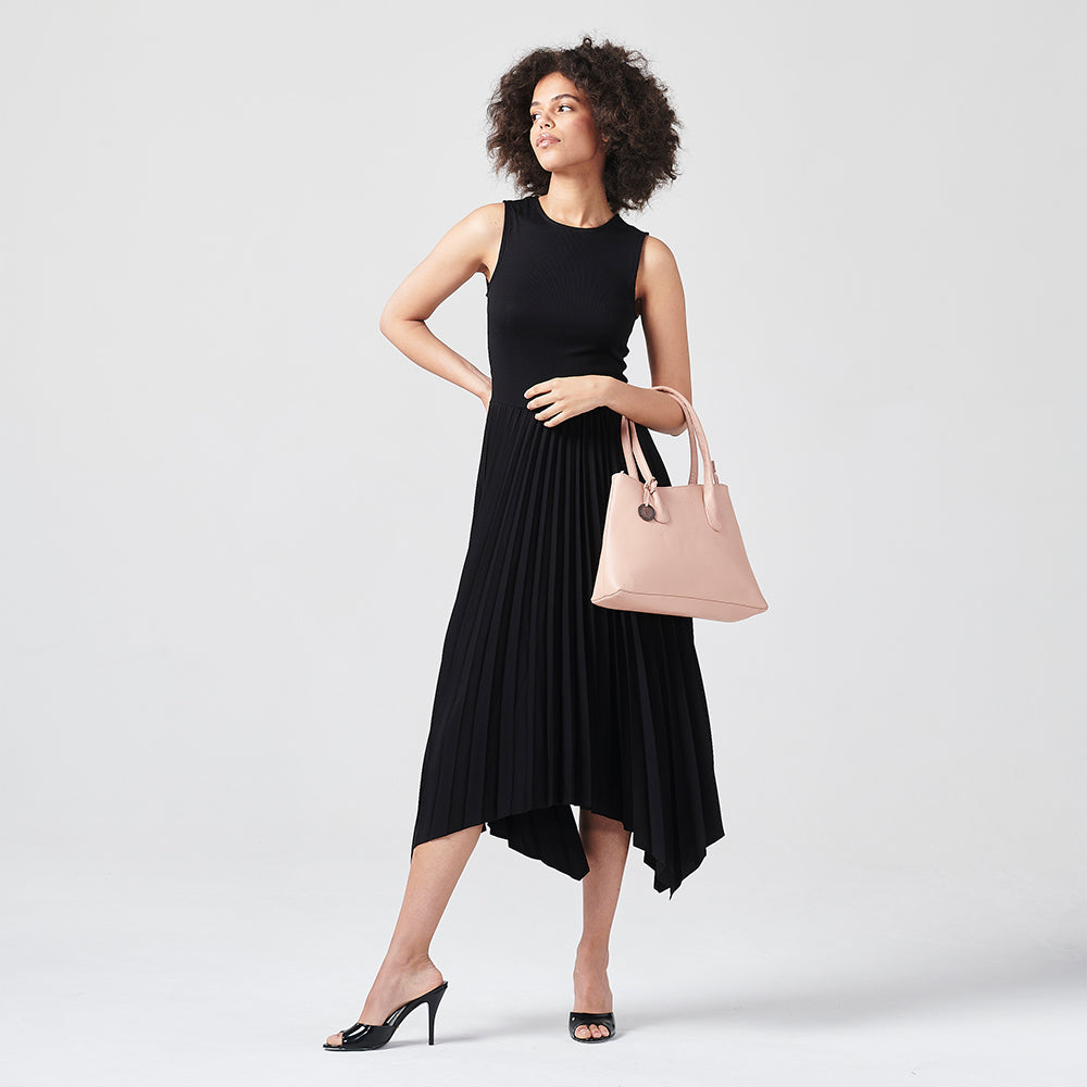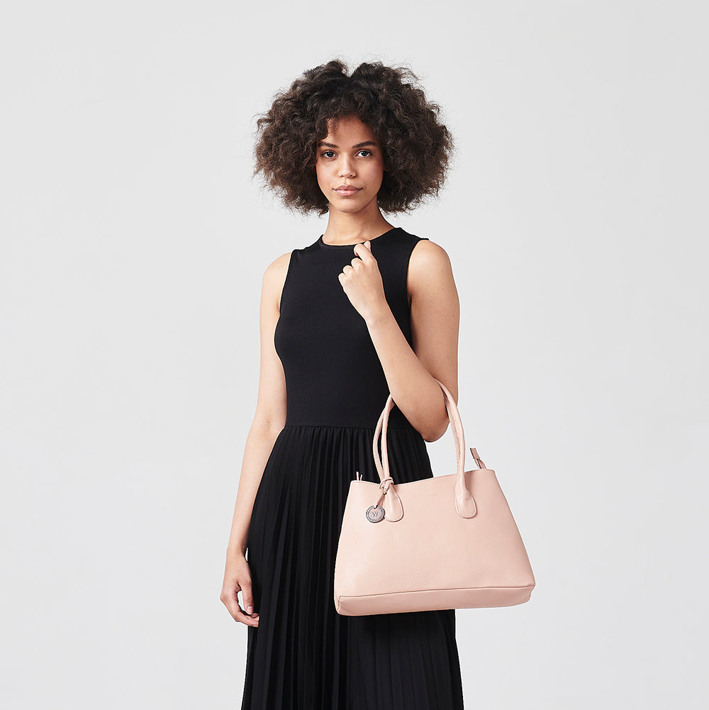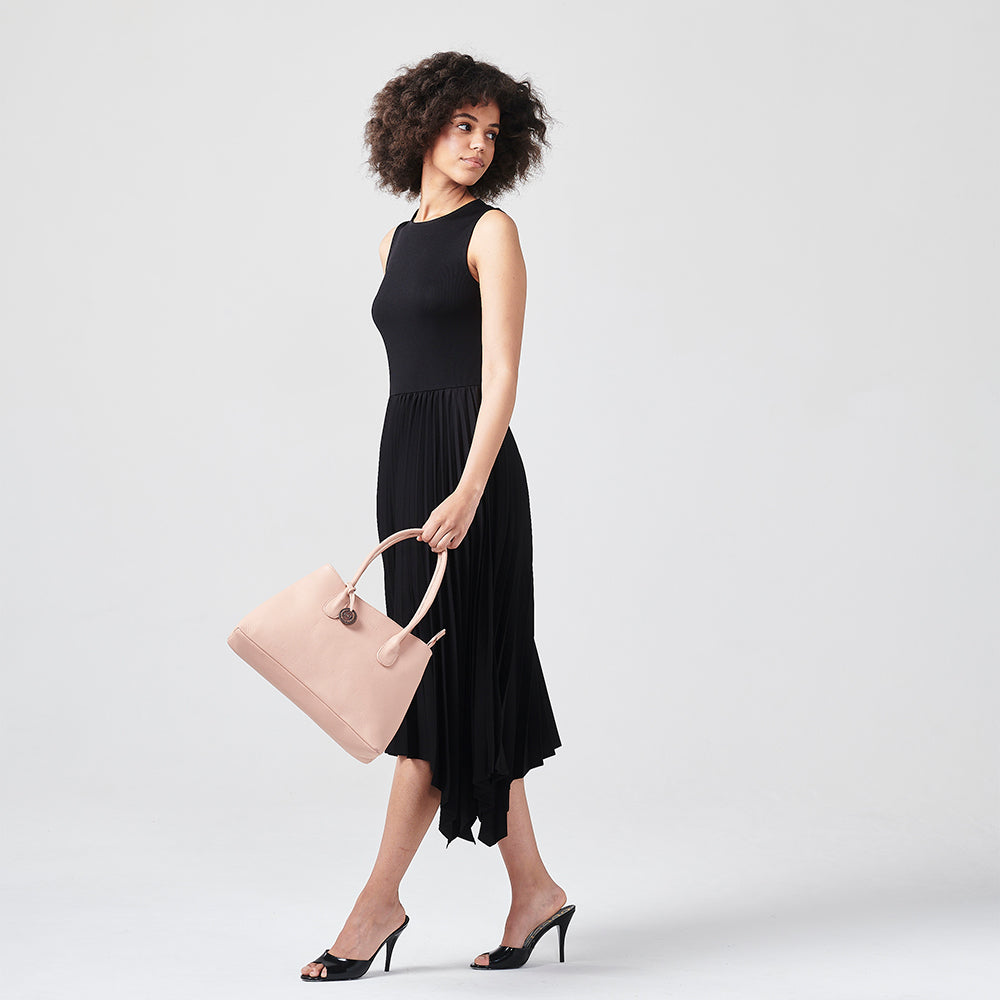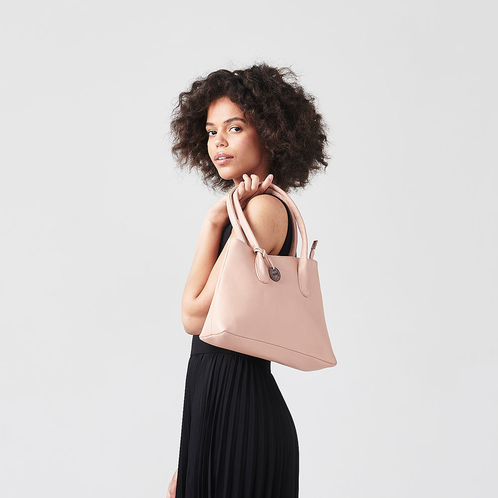 Similarly, our Flora Piccola is a unique and petite tote with fixed slim handles and an asymmetrical silhouette that opens to several internal pockets, allowing the owner to remain organised and confident as they tote their valuables from stadium to garden party. The Flora Piccola packs a lot of punch for this petite bag – much like its muse.