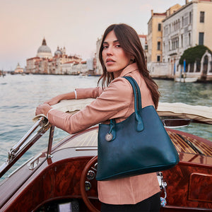 • Our Azzurra full grain leather is a multi-dimensional blue/green colour. The depths and hues of the blue/green colour on your bag will depend on which parts of the hide are used to create the panels that will be used to craft your bag - meaning every bag is unique. Our Azzurra Colour represents the multi-dimensional blue and green shades of the sea, particularly in the Amalfi Coast areas of Capri and Ischia in Italy...forever our muse.