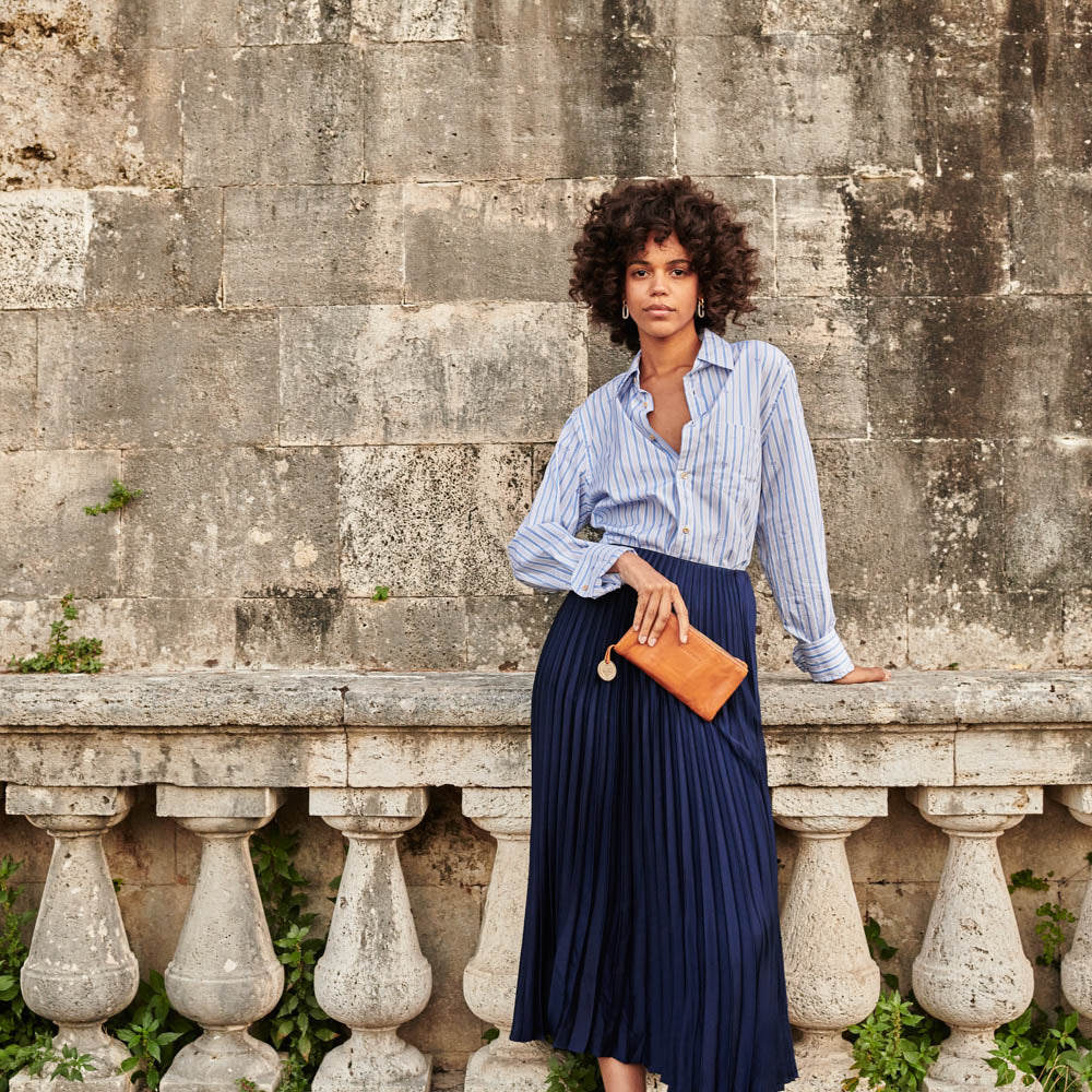 The lines of our Anacapri wallet and the functionality of our La Fontelina have intertwined to bring you one of our most beautiful and practical wallets yet. With two external zippers, a folded internal pocket and plenty of card holders, all securely tucked away with snap closures, the Ana-Fontelina wallet could in fact be the traveller’s dream. Featuring our BRAND NEW "W" cotton lining.