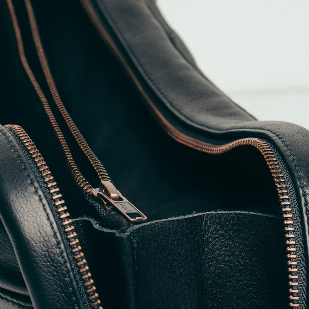 Our bags are crafted with full grain leather (the best quality and strongest type of leather) and in their most natural state it is best to protect the leather using one of the many leather care products on the market. We like leather conditioner as it protects and conditions the leather. We have found creams and leather rubs work much better on our leather, rather than sprays. More about leather care.