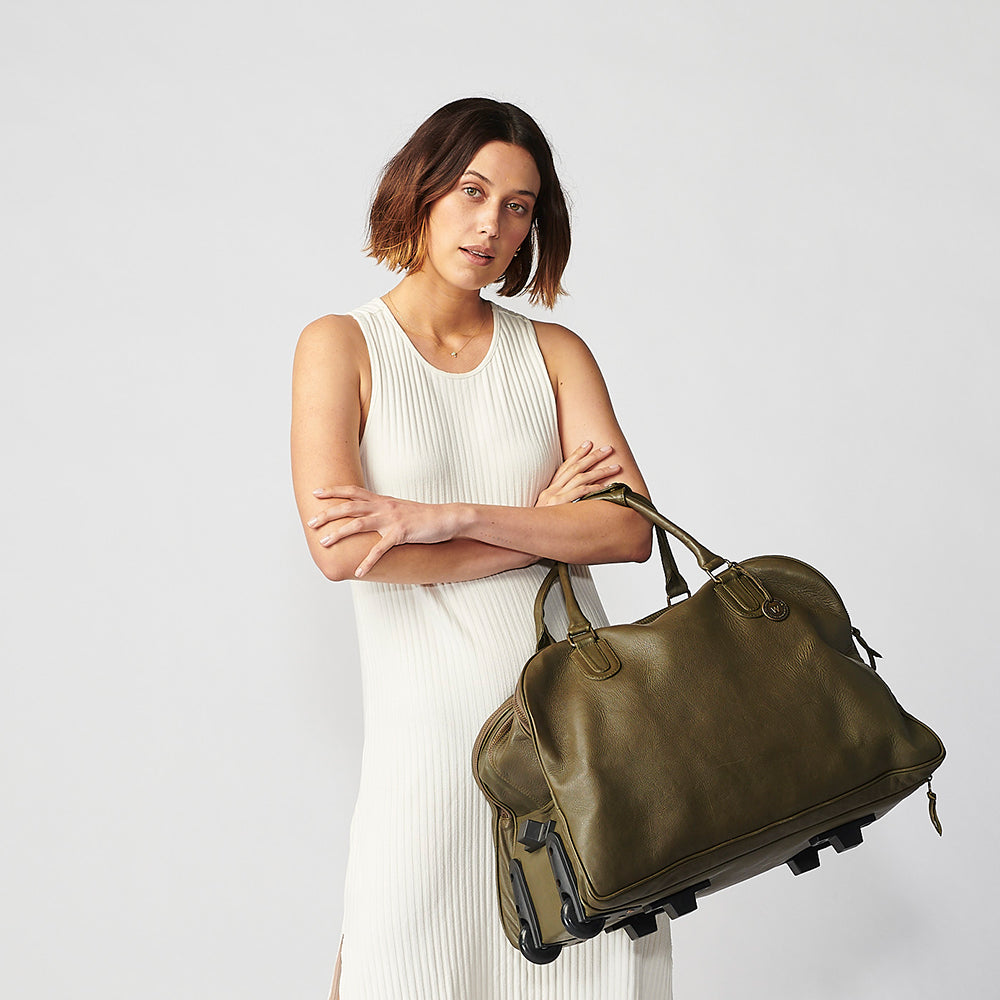 The Palermo Duffle is a favourite amongst weekend travellers – it has 3 sections with 9 open and zippered pockets that will help you stay organised and efficient on any trip, long or short. With a retractable telescope handle, discreet wheels and top handles that allow you to pack it as full as you need for your next great adventure. We are convinced that the Palermo Duffle is the future of travel, its beauty and soft grain leather construction glow up any outfit and yet its fun and slouchy style gives off the vibe like you bought a plane ticket on a whim and adventured across the country for dinner with the Godfather - ‘Let me make you an offer you can’t refuse…’