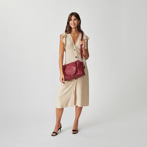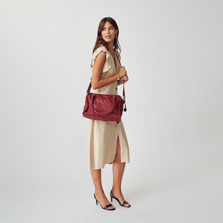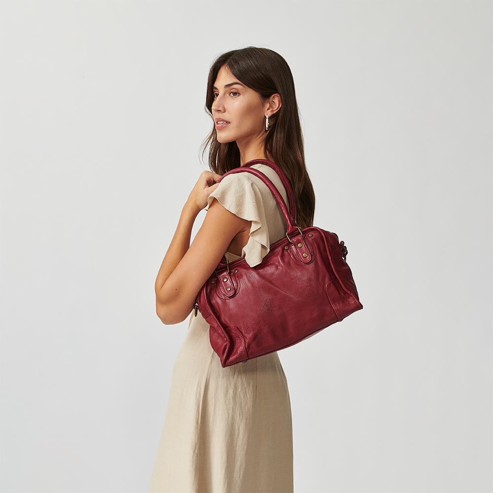 The only way to access this well-preserved Italian hotspot on the Tyrrhenian Sea is on foot. You won’t forget flagging down one of the many experienced water taxis whose drivers double as tour guides, and they share stories of this enchanting island filled with narrow streets, therapeutic thermal waters, winding lanes and exquisite gardens. This classy fishing village, bustling with restaurants and shops, and beautiful beaches that add such life to an otherwise isolated town. Our Saint Angelo handbag, with chic rivets and multiple strap options, has a slouchy square shape giving you as much room as you need to tuck your bathers next to your essentials for a quick dip in the natural hot springs that Ischia is famous for.