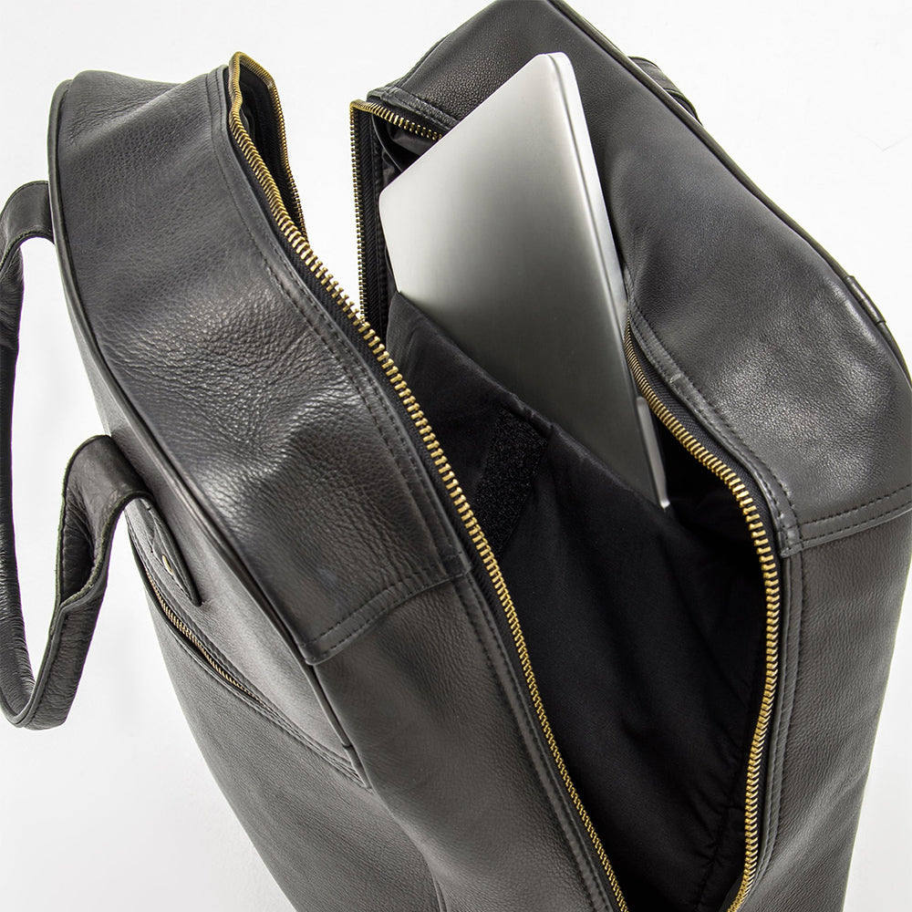 • Internal laptop sleeve against back wall of bag with Velcro strap