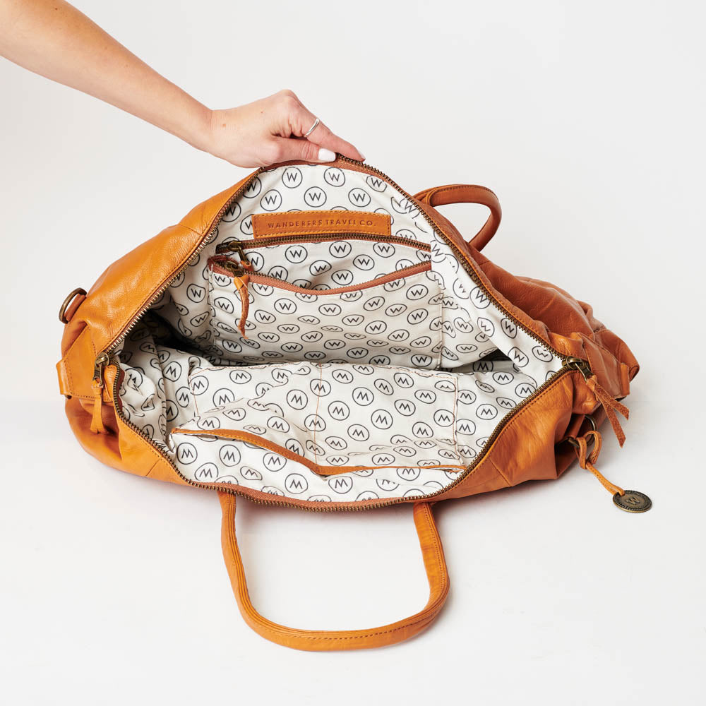 Depending on whether you are taking a business meeting at the ginormous Pixar complex or a weekend trip to the world’s best vineyards, our new San Francisco Duffle is a friend to any traveller. This large, oversized weekender has a removable crossbody strap, adjustable side clip detail and sturdy handles, plus 2 internal zippered pockets and 3 open pockets. This king-sized duffle is indeed fit for any last-minute trip – even an escape from Alcatraz. Featuring our BRAND NEW "W" cotton lining.