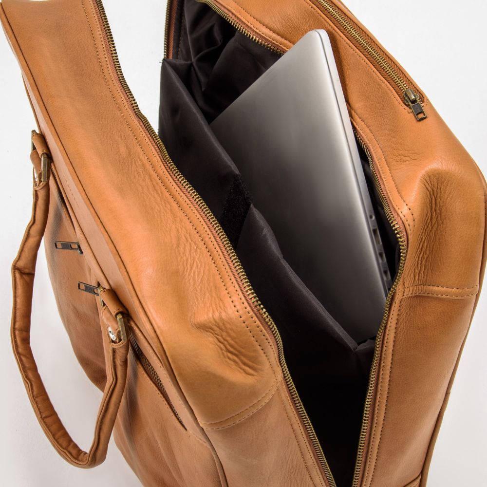 - Internal laptop sleeve against back wall of bag with Velcro strap