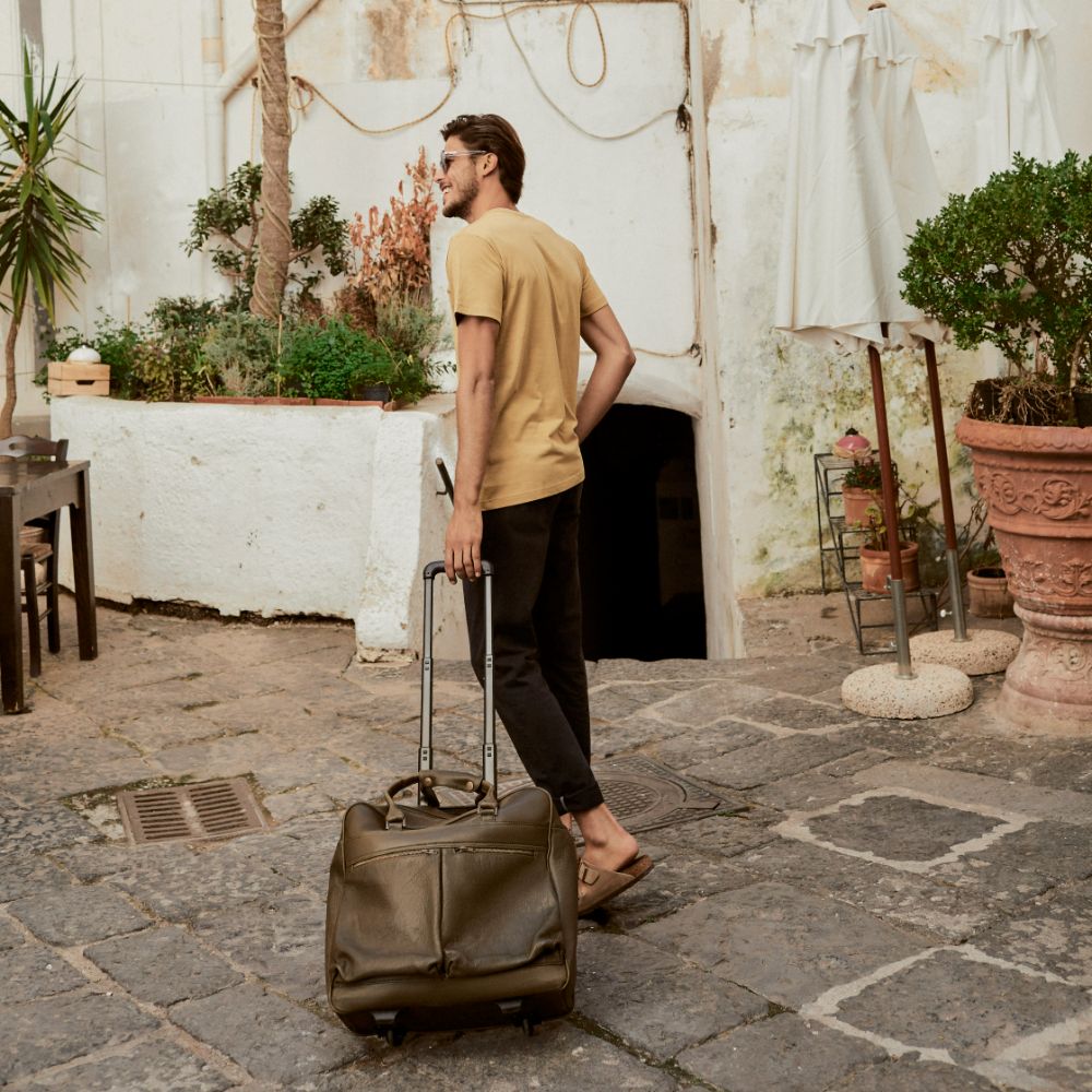 Like our San Sebastian Cabin Bag - versatile, unisex and super luxe. With two large external pockets for easy access to your travel essentials, internal laptop sleeve and with plenty of room inside. Pull it along via the telescopic handle and wheels or hide the handle away and use the full grain leather handles to carry this versatile bag. However you choose to use it, one thing is for sure...this bag was made for Wandering!