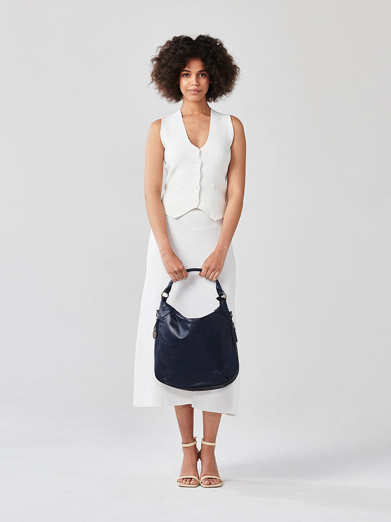 Just like our Santorini handbag, made with the softest full-grain leather and particular attention to detail and functionality. With an adjustable crossbody strap and a shorter shoulder strap, working zipper detail on the bottom to adjust the depth of the bag, three internal pockets, and plenty of room inside, our Santorini handbag is one of substance and beauty.